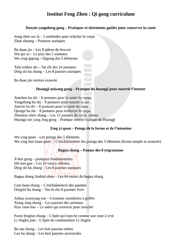 Nous sommes très attachés à ces pratiques, car elles forment les pilotis sur lesquelles repose la médecine traditionnelle chinoise : la prévention, la détente, le renforcement, l'éveil, etc. N'hésitez pas à nous écrire pour plus de renseignements et de précisions.