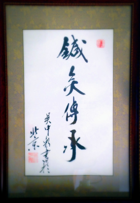 Certificat bai shi du maître Gao Ji Wu, 5ème génération de kung fu bagua zhang, Président du comité professionnel de bagua zhang de Pékin, et 8ème duan dans le classement des arts martiaux chinois ; faisant ainsi de Raphaël son unique disciple français.