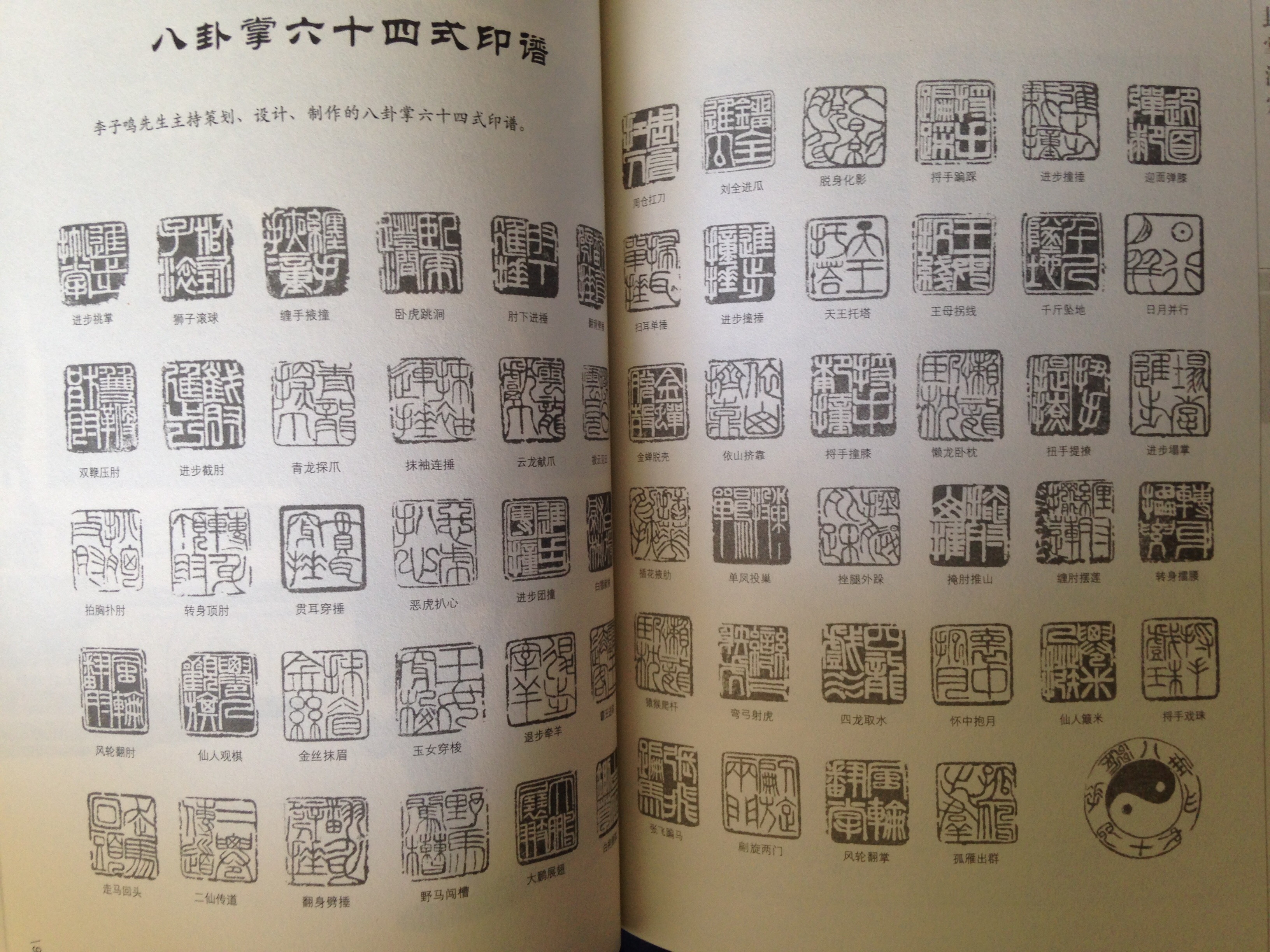 ["La forme linéaire des 64 mains du bagua zhang est riche, sans fioriture, raffinée, fonctionnelle ; c'est un système d'auto défense puissant. De nos jours, peu de personne en ont reçu la transmission." Introduction des 64 mains par maitre Li Zi Ming (1902-1993).]